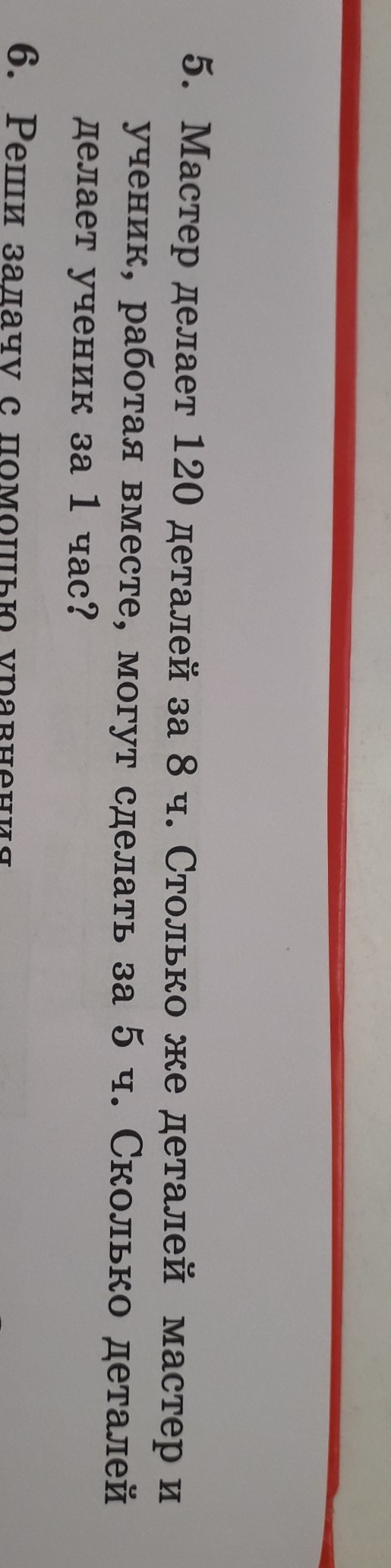 2) 120:5=24 (дет.) - делают мастер и ученик за 1 час совместной работы