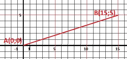При х = 15 -> y(15) = 5 Точка В(15;5)
