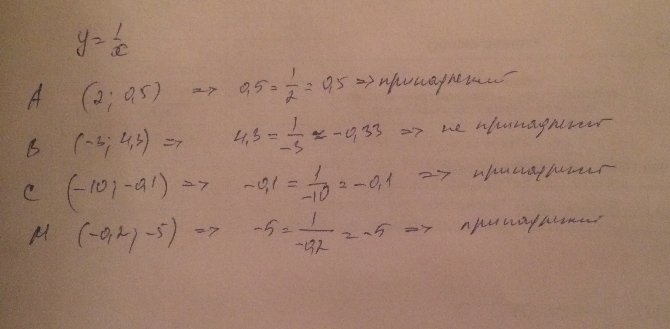 Подставляем координаты точек в уравнение, если равенство верно, значит точка принадлежит графику и наоборот.