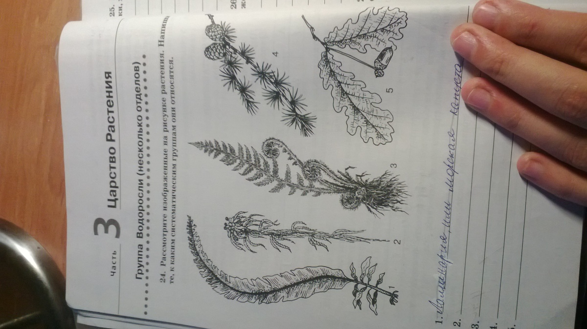 Рассмотрите изображенные на рисунке растения. Напишите, к каким систематическим группам они относятся.