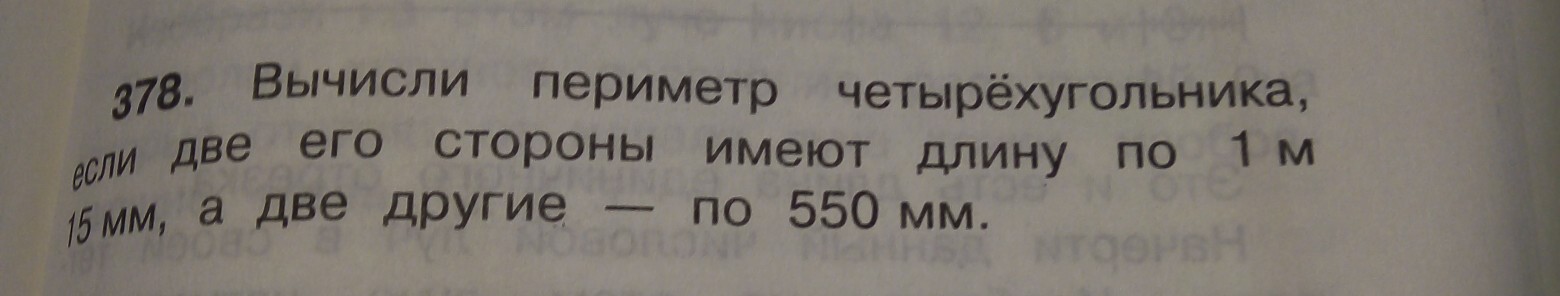 вычесли пиремитр четырёхугольника, если две его стороны имеют длину по 1 метру 15 мм, а две другие - по 550 мм