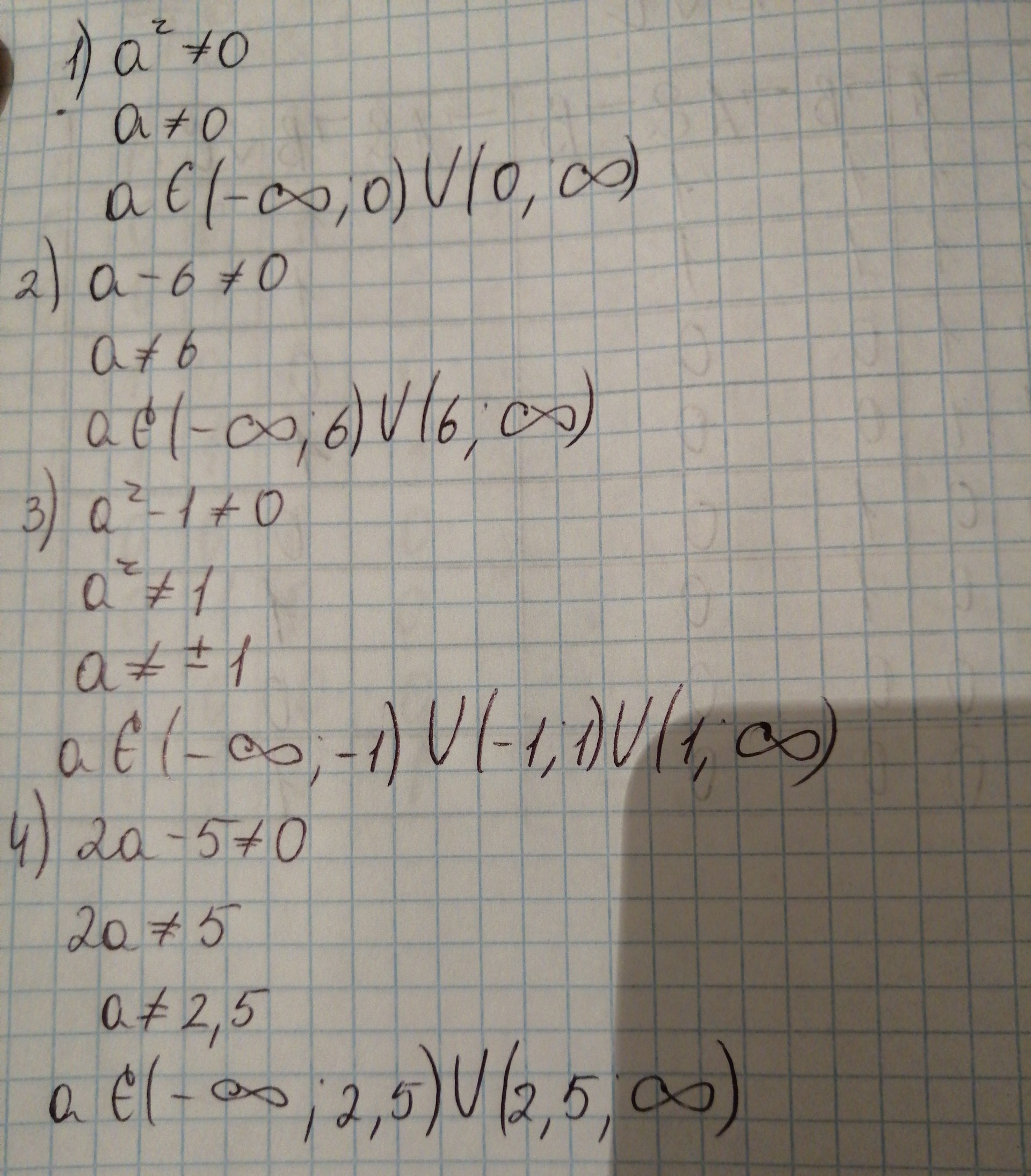 4) 2а - 5 ≠ 0, 2а ≠ 5, а ≠ 5: 2, а ≠ 2,5