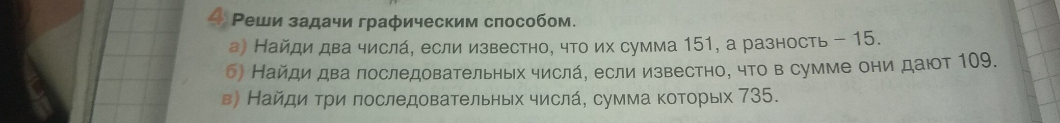 решите плиз в тетрадях 4 класс решите задачи графическим способом найди два последовательных числа если известно что в сумме они дают 109