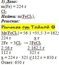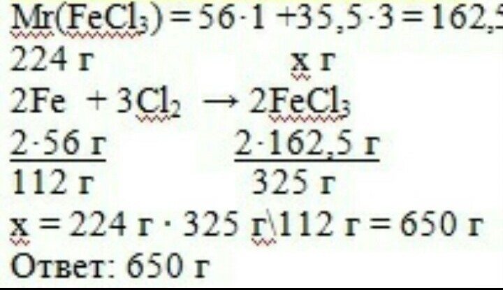 железо массой 224 г полностью прореагировало с хлором. Рассчитайте массу образовавшегося хлорида железо |||