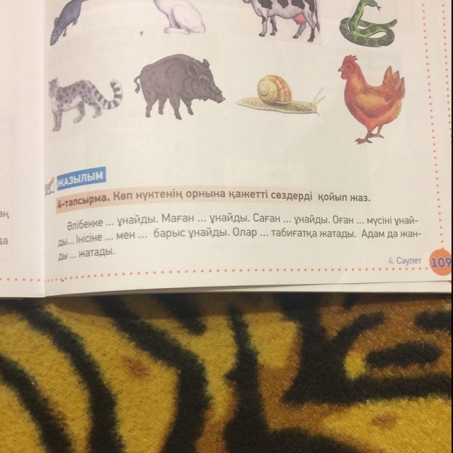 Əлібекке тышқан ұнайды. Маған үлу үнайды. Саған сиыр ұнайды. Оған жалбарыс мүсіні ұнайды.