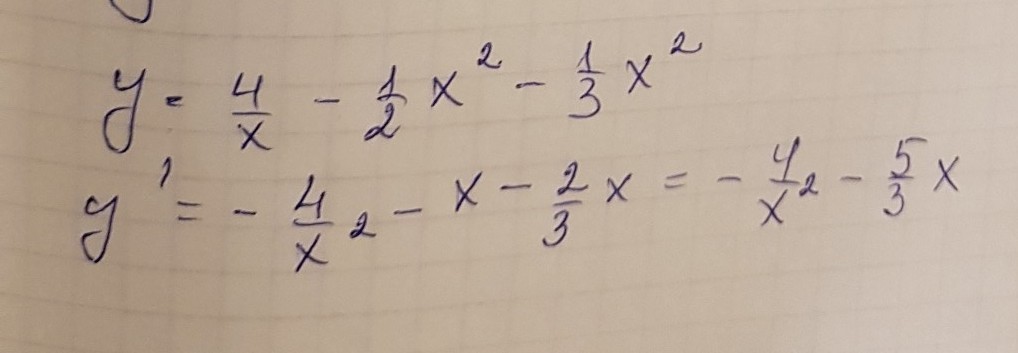 y=4/x-1/2x^2-1/3x^2 найти производную функции