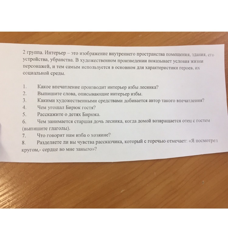 1. 7. В избе было пусто,мрачно и сыро. Как мне кажется,погода и интерьер избы, проводят некую параллель души лесника. Всё указывало на бедную жизнь, а избы не касалась женская рука. Порванный тулуп висел на стене дома.