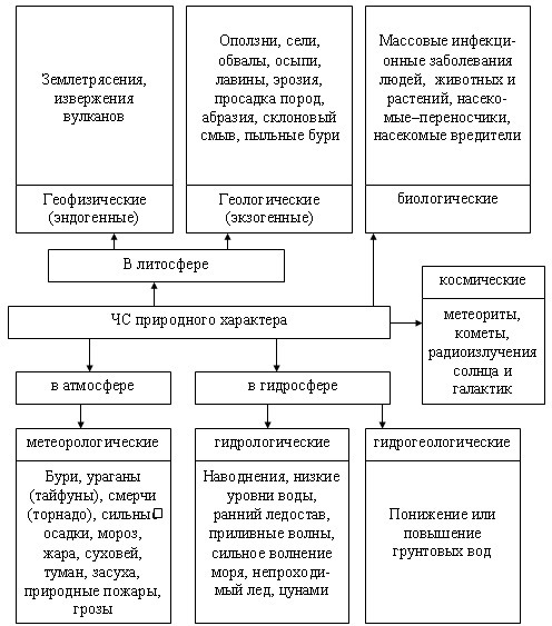 ЧС природного характера складываются под воздействием природных явлений - стихийных бедствий.