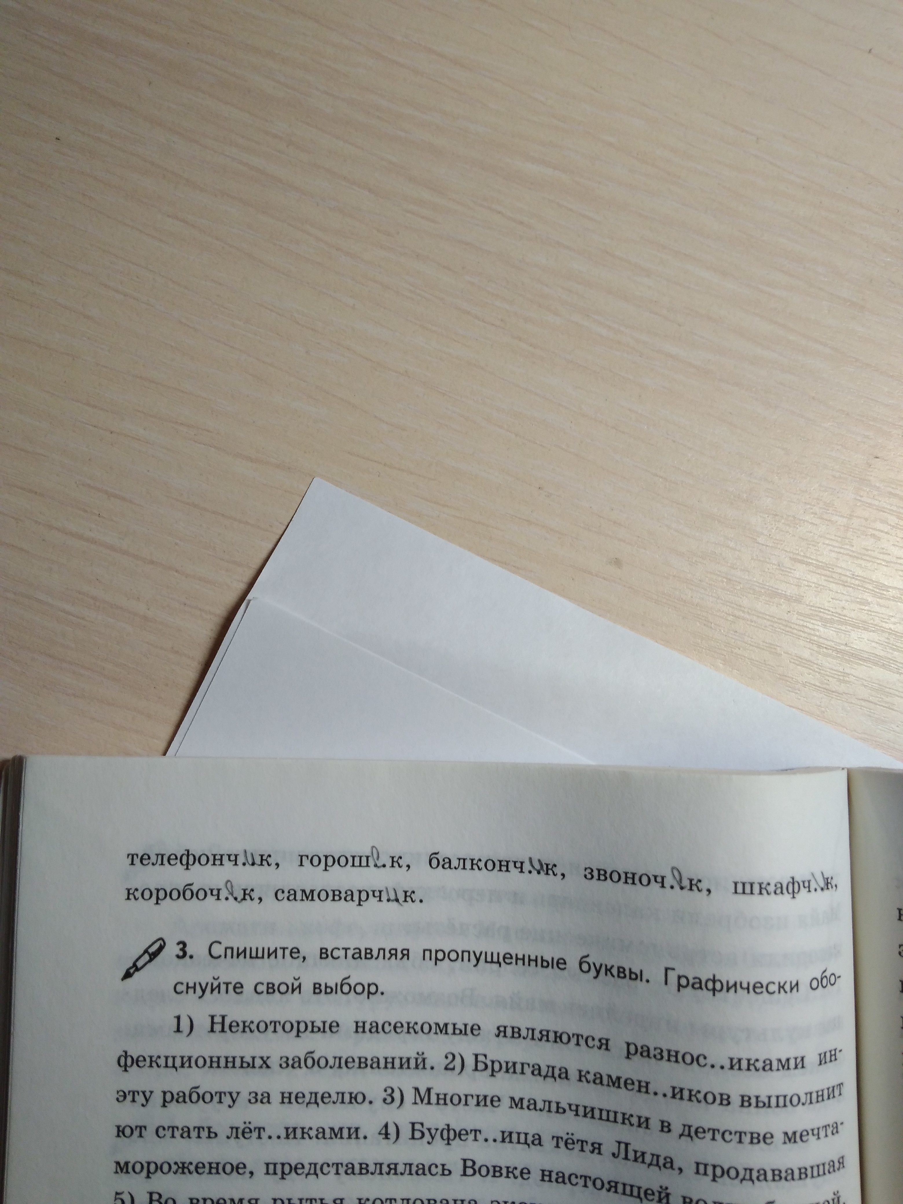 Котик, горшочек, орешек, годик, чайничек, листик, листочек, паровозик, журнальчик, кусочек, половничек, карандашик, рассказчик, колокольчик, телефончик, горошек, балкончик, звоночек, шкафчик, коробочек, самоварчик