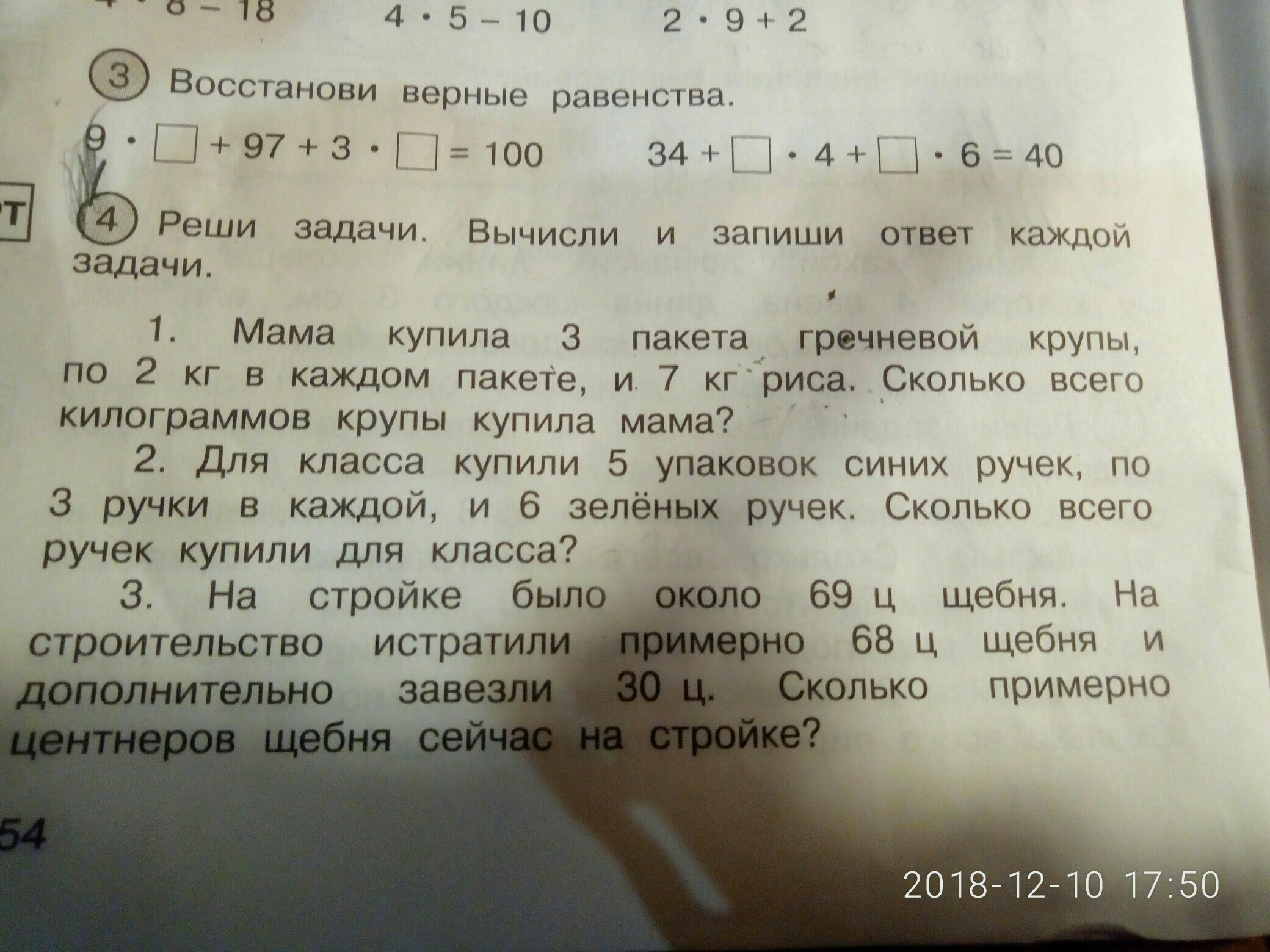 в 1 и 2 задачах слово всего можно заменить фигурной дужкой