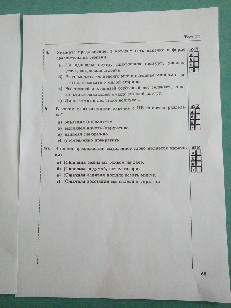 8. в) все темней и кудрявей березовый лес зеленеет, колокольчики ландышей в роще зелёной цветут.
