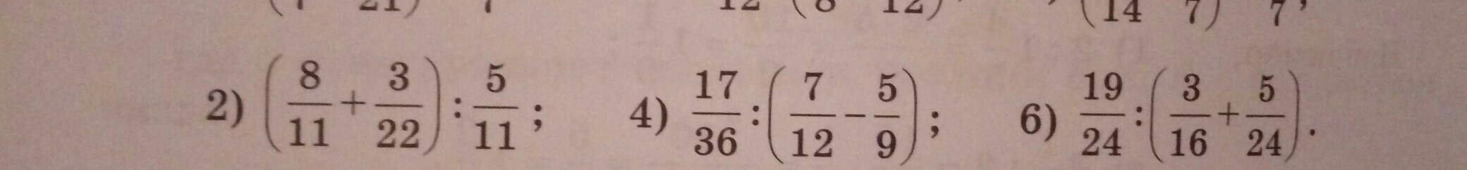 2) (8/11+3/22)5 /11=(16/22+3/22):5/11=19/22*11/5=19/10=1 9/10