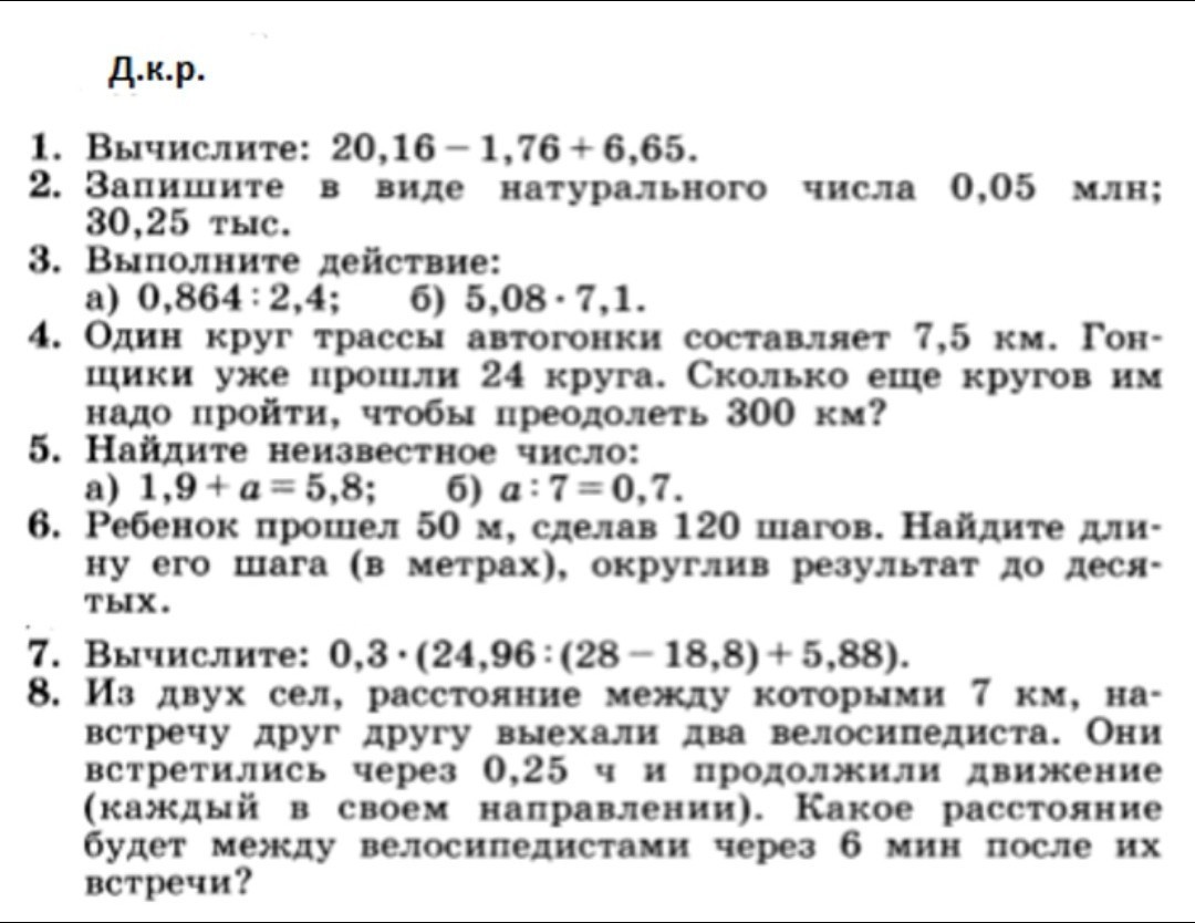 1)25,05 2)50000 і 30250 3)0.36 і 36 4)40 5)3,9 і 4,9 6)0.4м 7)2.577