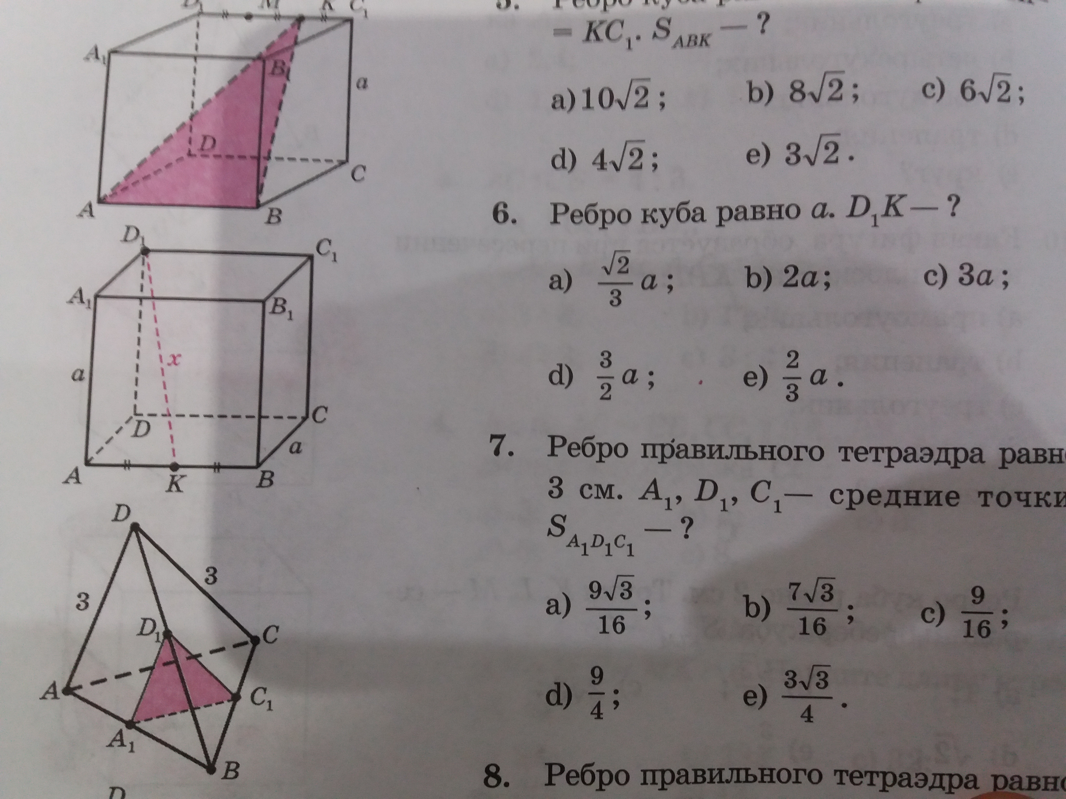 задача решена правильно, но очень длинно и нерационально. На будущее - любая гипотенуза любого треугольника, построенного на ребрах параллелограмма равна корню квадратному из квадратов соответствующих отрезков. Т.е Д1К - это гипотенуза треуг. АД1К, а АД1 - гипотенуза треуг АА1Д1, где АА1=А1Д1=а, АК=а/2, ну а дальше просто подставить.
