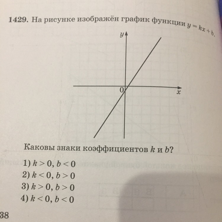 Смотри,k-отвечает за то в какой четверти находится прямая,если k<0 то во 2 и 4,если k>0 то в 1 и 3 b-"живёт" на оси oy , если b<0 то он находится в нижней части графика то есть где отриц. числа,а если b>0 то в верхней части графика то есть где полож. числа.Надеюсь понятно,если не знаешь где какая четверть напиши