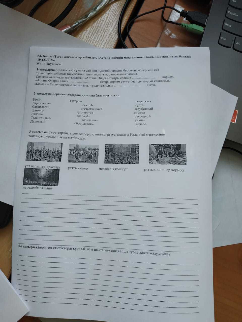 Край-Өлке, стремление - талпыну, сарай, загон-қора, зритель - көрермен, ладонь - алақан, талантливый--өнерлі, талантты, духовный-рухани, ветерок-самал жел, святой-киелі, архитектор-сәулетші, деловой-іскер, создание-жасау, оборудовать-жабдықтау, подножье - аяқ асты, суета-қарбалас, зарубежный-шетелдік, символ - таңба, очередной - кезекті, начало-бастапқы кез (басы)