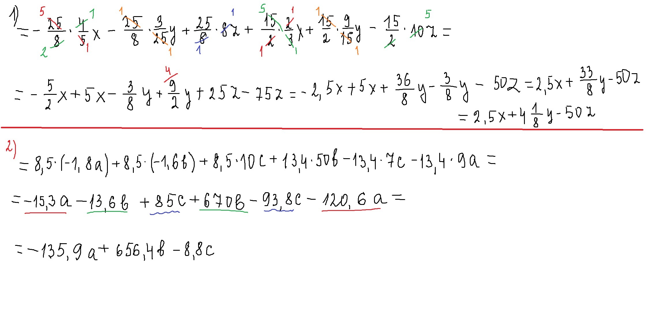 1)=-25/8(4/5x+3/25y-8z)+15/2(2/3x+9/15y-10z)=-2 1/2x-0.375y+25z+5x+4.5y-75z=2 1/2x+4.125y-50z