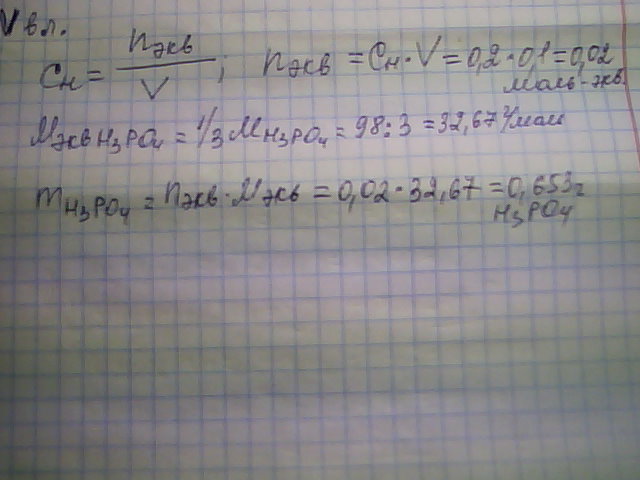 Сколько граммов растворённого вещества содержится в 200 мл 0,1 Н раствора Н3РО4?