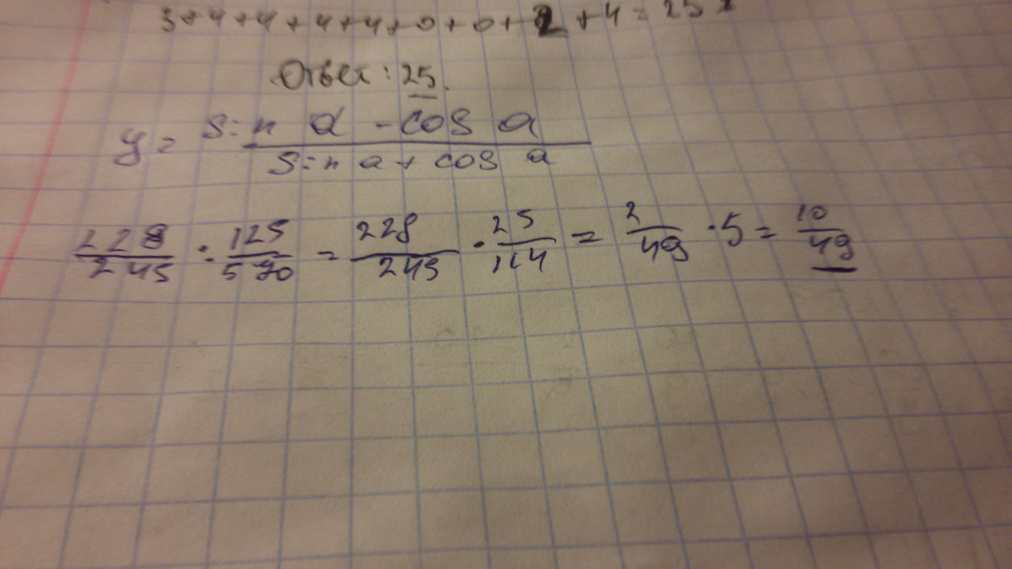 На листке написано 10/49,а в ответе не на листке написано 10/45,чему верить??
