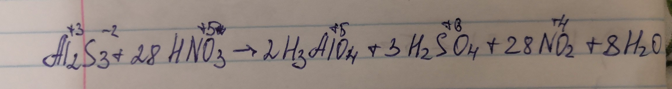 100 баллов!!!!!!!!!Al2S3+HNO3=H3AlO4+H2SO4+NO2+H2O расставить коэфициенты методом электронного баланса.