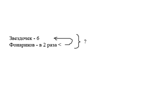 на уроке труда мальчик сделал 6 звёздочек, а фонариков в 2 раза меньше. Сколько всего звёздочек и фонариков сделал мальчик? Сделай к задаче схематический рисунок и реши её,