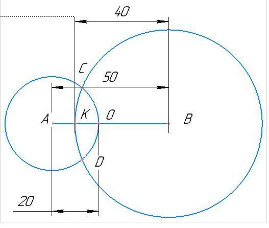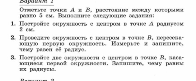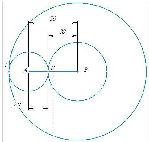 3) Построим 2 окружности первая будет иметь радиус которой будет равен стороне BO=3 см, а вторая будет иметь радиус AB+rAO=7 см