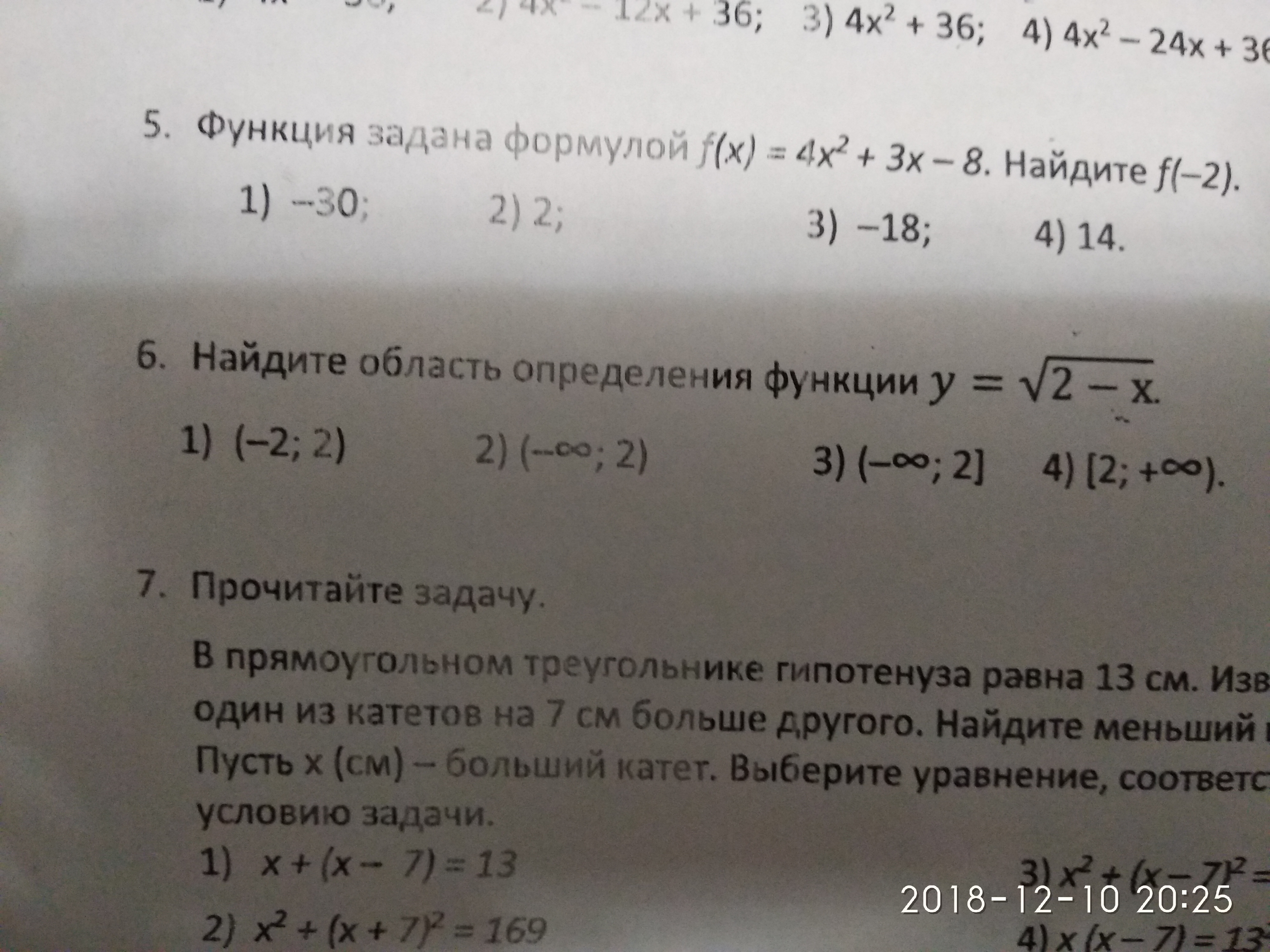 В аналитической записи функции имеется арифметический квадратный корень, зависящий от аргумента. Именно этот корень и будет накладывать ограничения на значения независимой переменной. По определению арифметического корня: подкоренное выражение должно быть неотрицательным. Поэтому решим неравенство: 2-x ≥ 0, откуда находим x: x ≤ 2. Это и будет областью определения функции