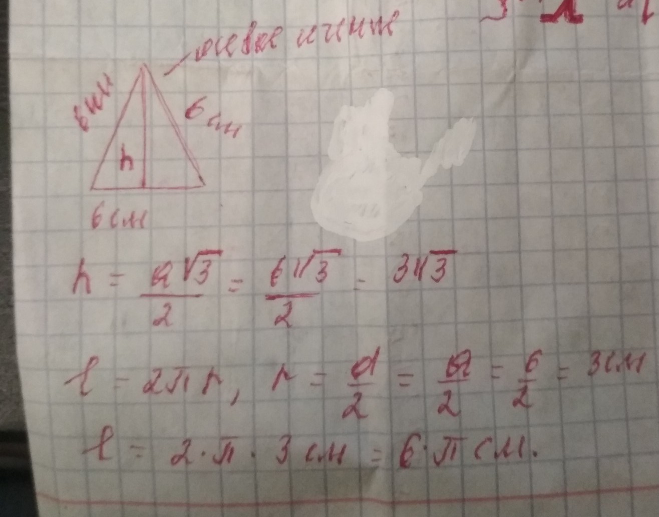осевым сечением конуса является правильный треугольник со стороной 6 см Найти длину окружности основания конуса и его высоту