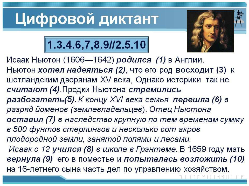 1.Исаак Ньютон(кто?) родился(что сделал?) 2.Ньютон (кто?) хотел надеяться(что сделать?), род(что?) восходит(что делает?) 3.Историки(кто?) не считают(что делают?) 4.Предки(кто?) стремились разбогатеть(что сделать?) 5.Семья(кто?) перешла(что сделала?) 6.Отец(кто?) оставил(что сделал?) 7.Исаак(кто?) учился(что делал?) 8.Мать(кто?) вернула (что сделала?) и попыталась возложить (что сделала?)
