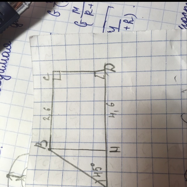 смотри, высота BH=CD, а нвдс-прямоугольник. тогда вс=нд=2,6. тогда ан=2. ВН=АНtg45°=2.