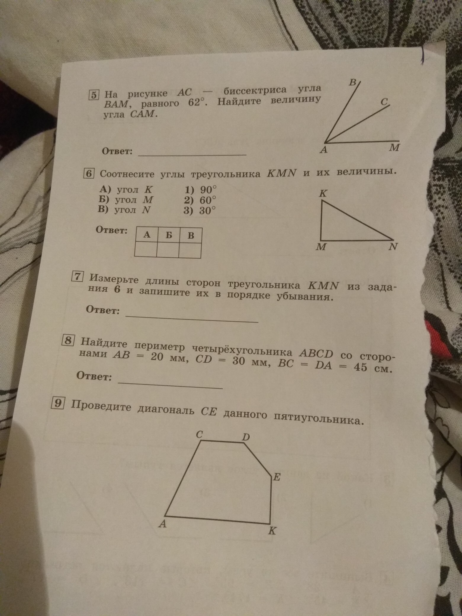 5. 62градуса : 2= 31градус