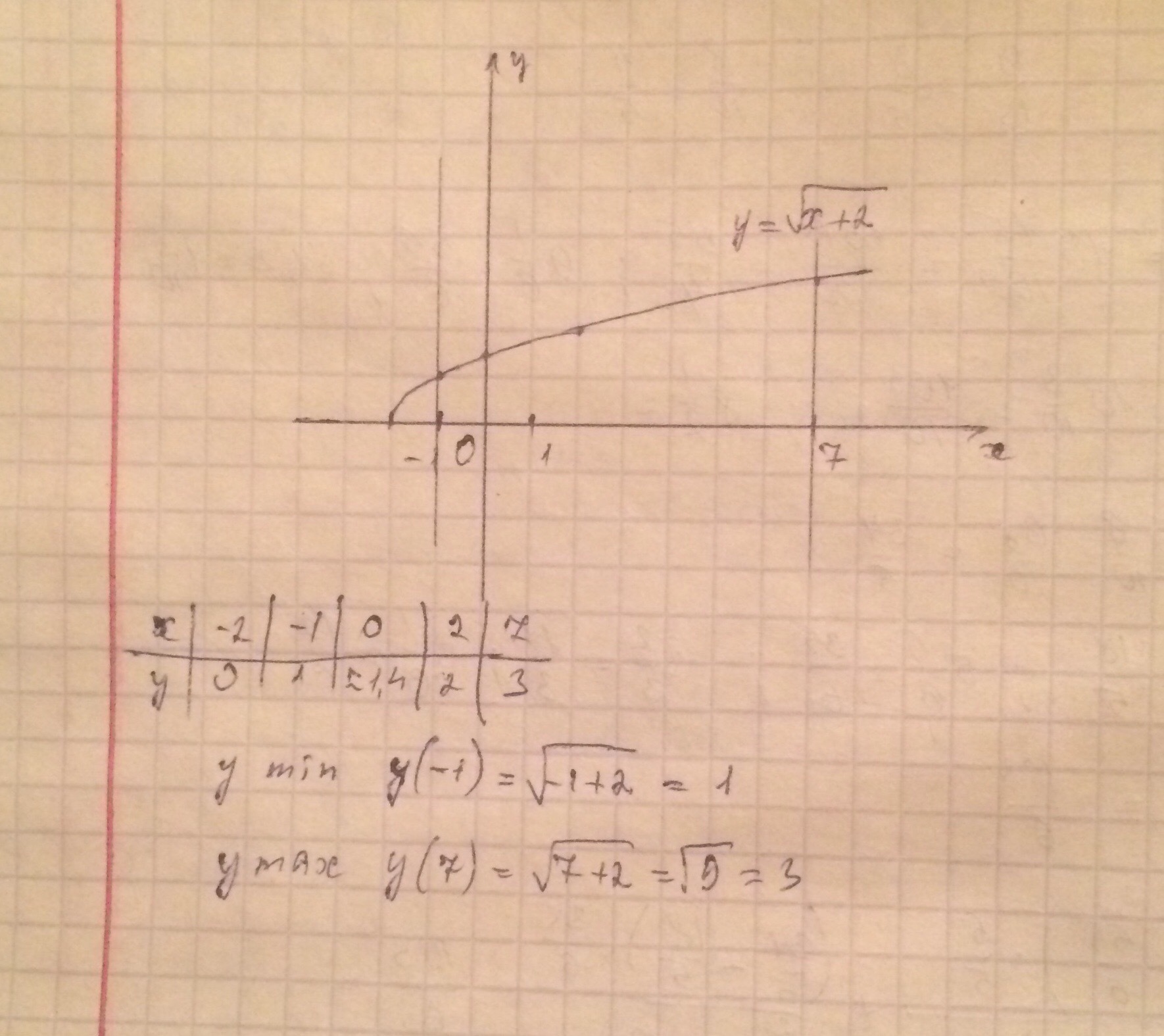 Этот график получаем параллельным сдвигом у=х^(1/2) на 2 ед влево по оси Ох.
