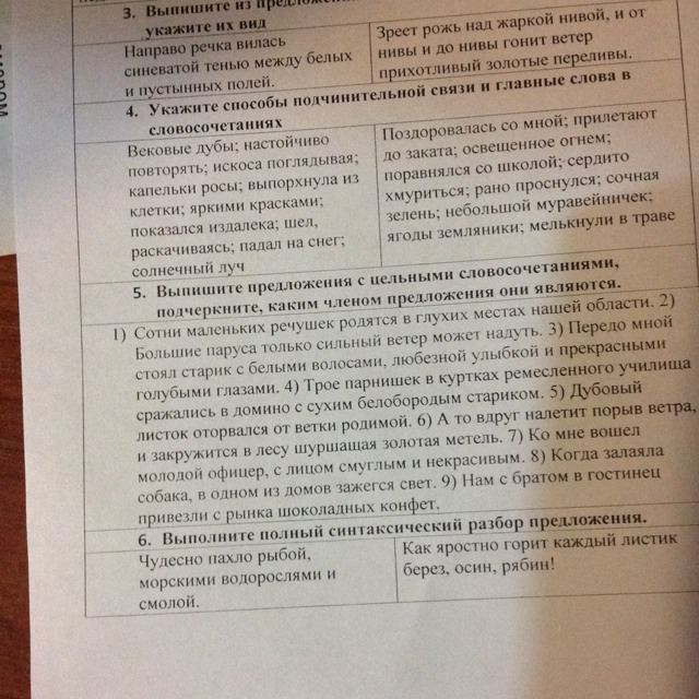 Номер пять помогите напишите номер предложения какой нужно списать и номер шесть где дополнение подлежащие сказуемое определение ну и тд. И в скобочках написать его характеристику