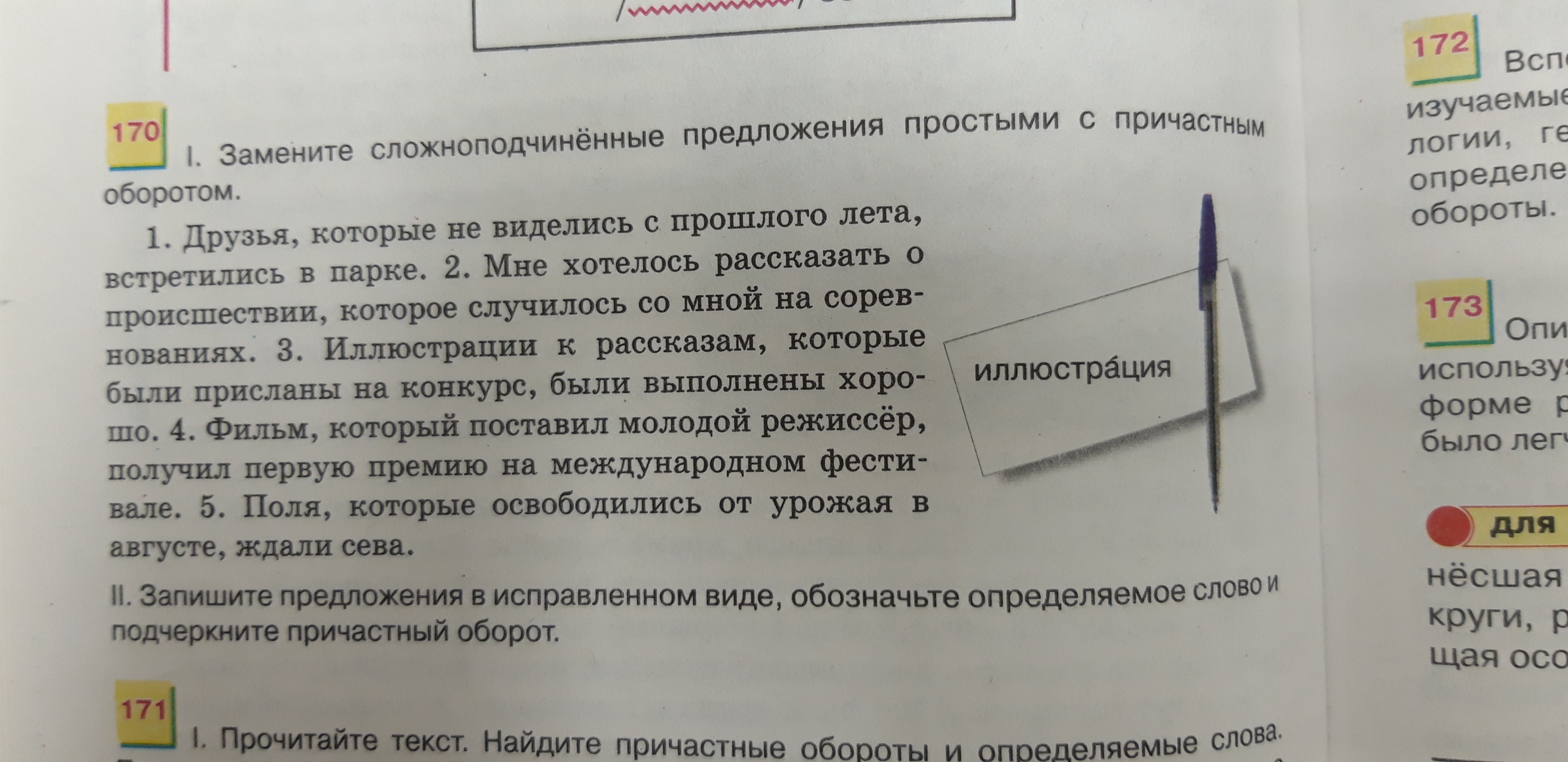 Номер 170 1 предложение на пример Друзья, которые не виделись с прошлого лета, встретились в парке. - Друзья, не видевшиеся с прошлого лета, встретились в парке.