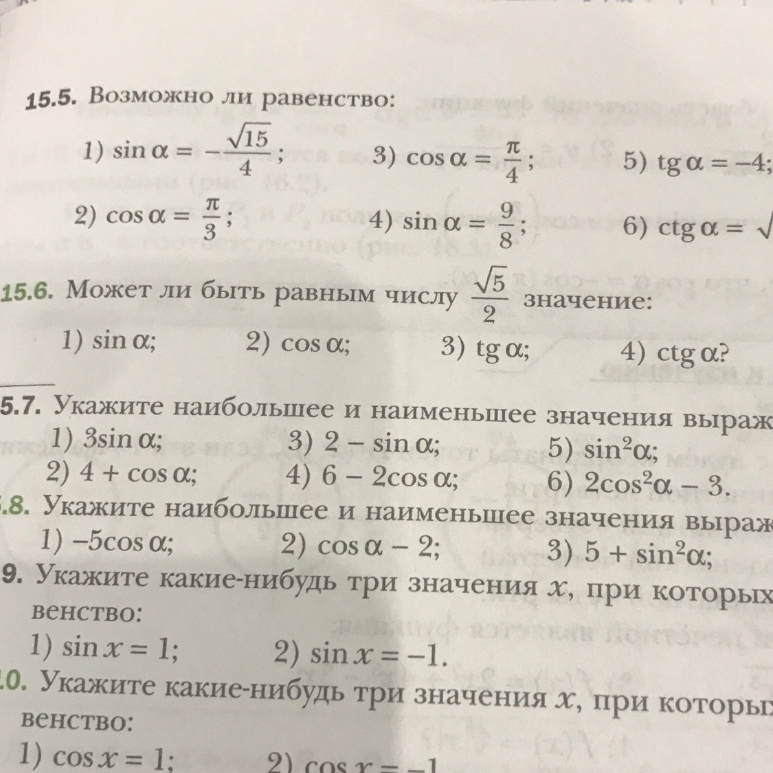функции тангенса и котангенса - неограниченные, их область значений (-oo;+oo) . поэтому, эти функции могут принять значение √5/2 .