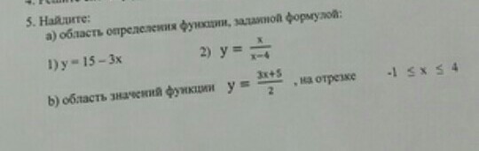 б) область значений функции у= 3х+5/2, на отрезке -1<х<4