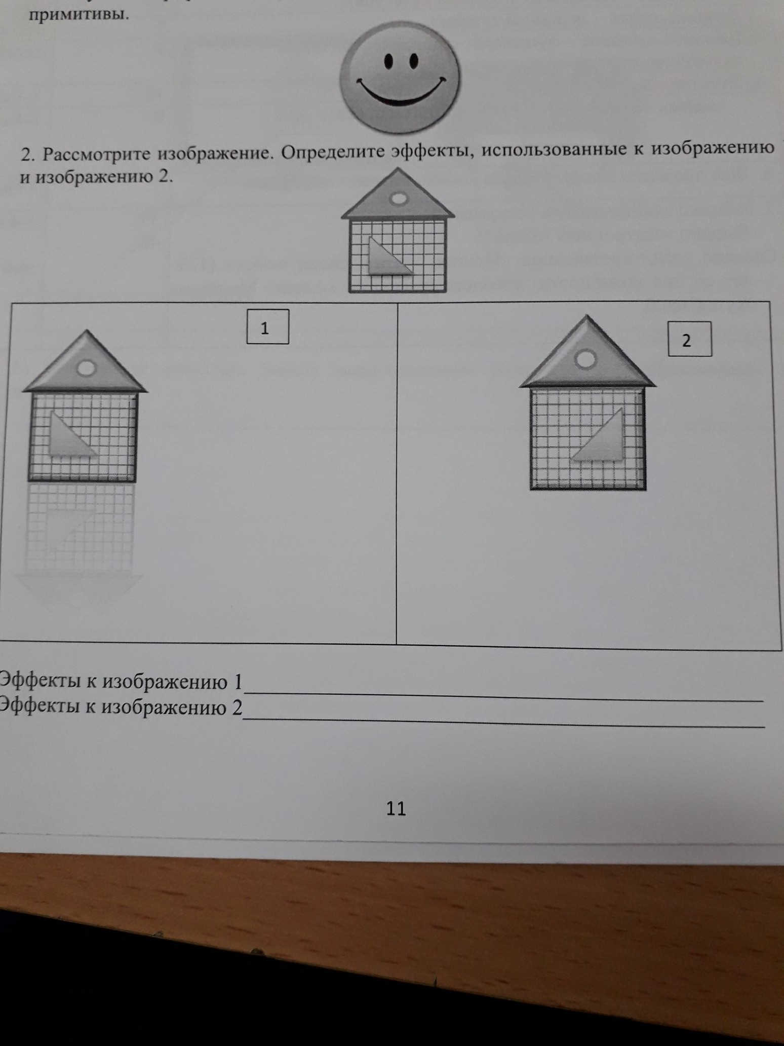 Рассмотрите изображение Определите эффекты использованных к изображению 1 изображению 2