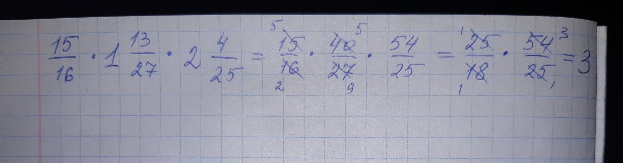 помогите пожалуйста найдите значения выражений 15 черта 16 умножить 1 целая 13 черта 27 умножить 2 целая 4 черта 25 равно