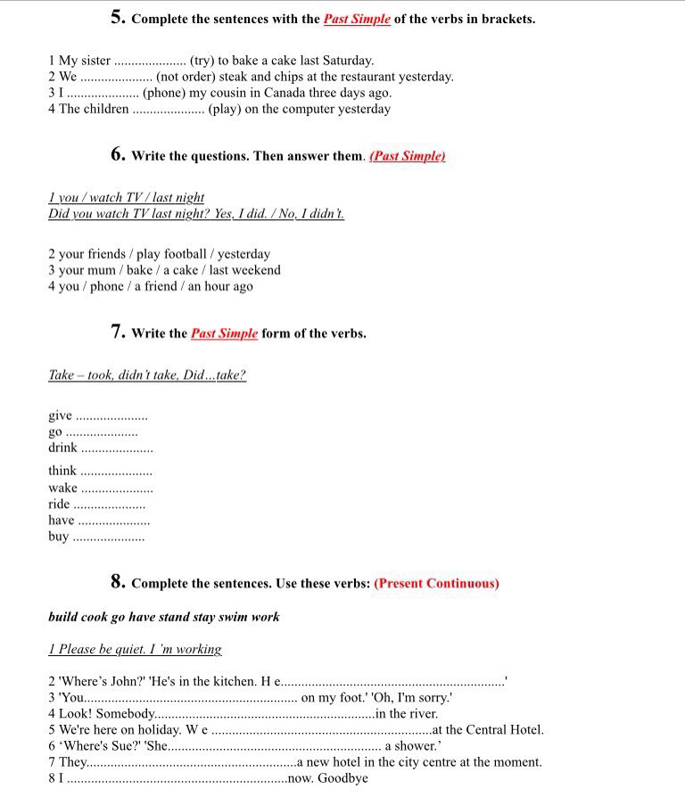 3. Did you mom bake a cake last weekend? - Yes, she did.