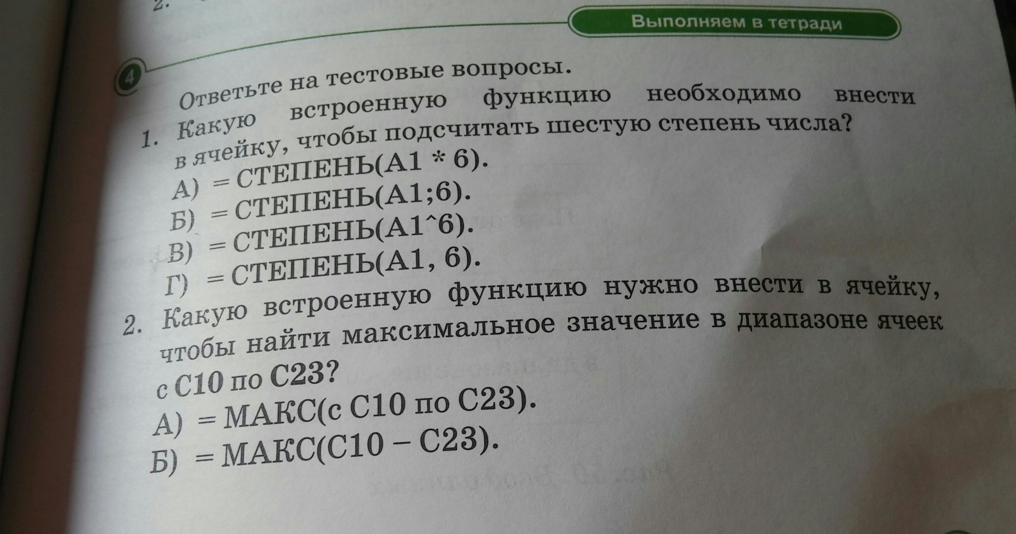тест информатика. продолжение 2 вопр:вариант в)=макс(с10:с23) г)=макс(с10,с23) .... 3вопрос? Какую встроеную функцию необзодимо внести в ячейку чтобы найти синимальное щначение в диапащоне ячеек С в7 по в10? а)=мин(с В7 по В10). б)=мин(В8:В11) г)=мин(В7:В10)