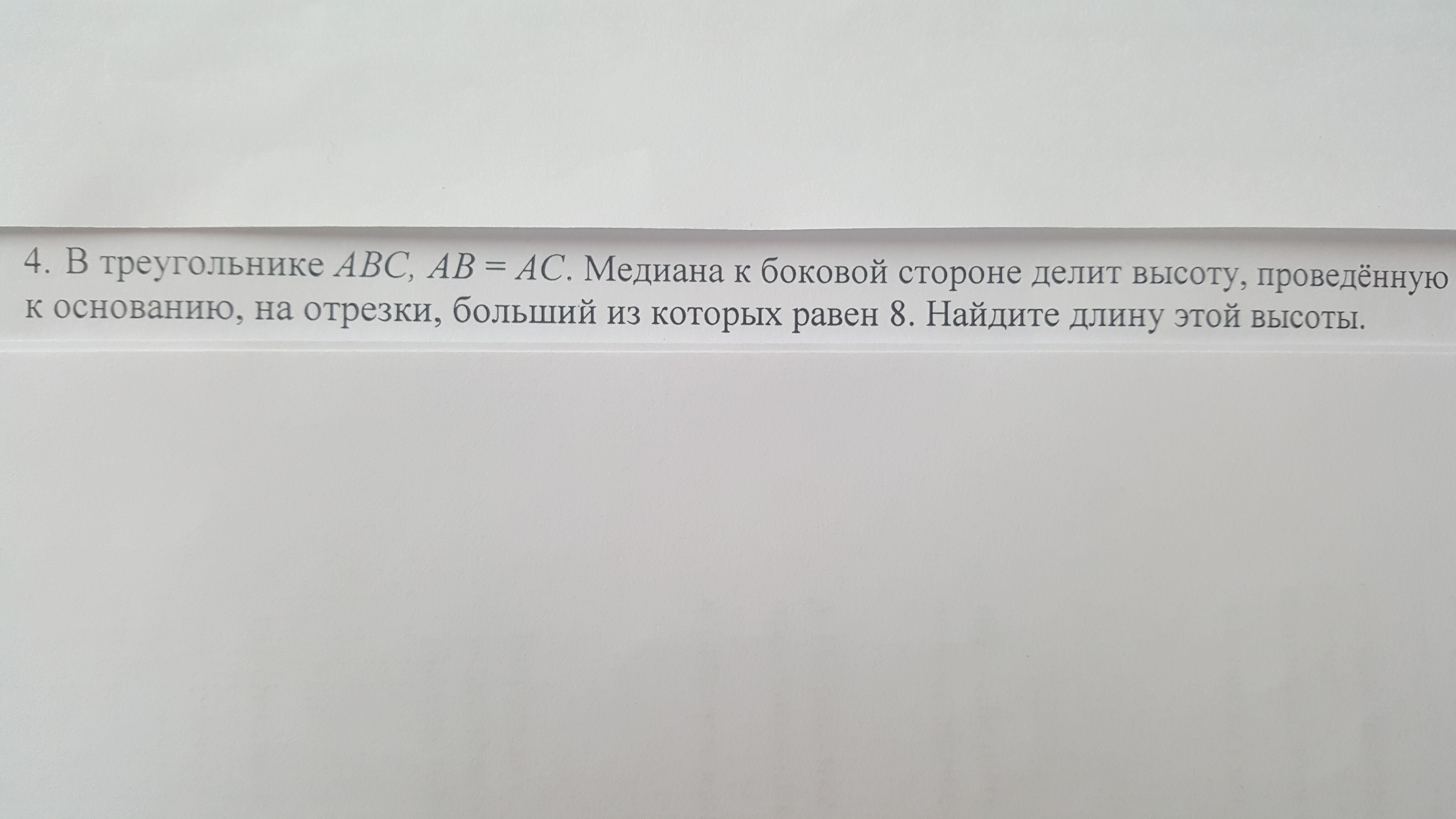 Т.к. высота проведенная к основанию равнобедренного треугольника одновременно является медианой, то она пересекается с медианой проведенной к боковой стороне в точке пересечения медиан.