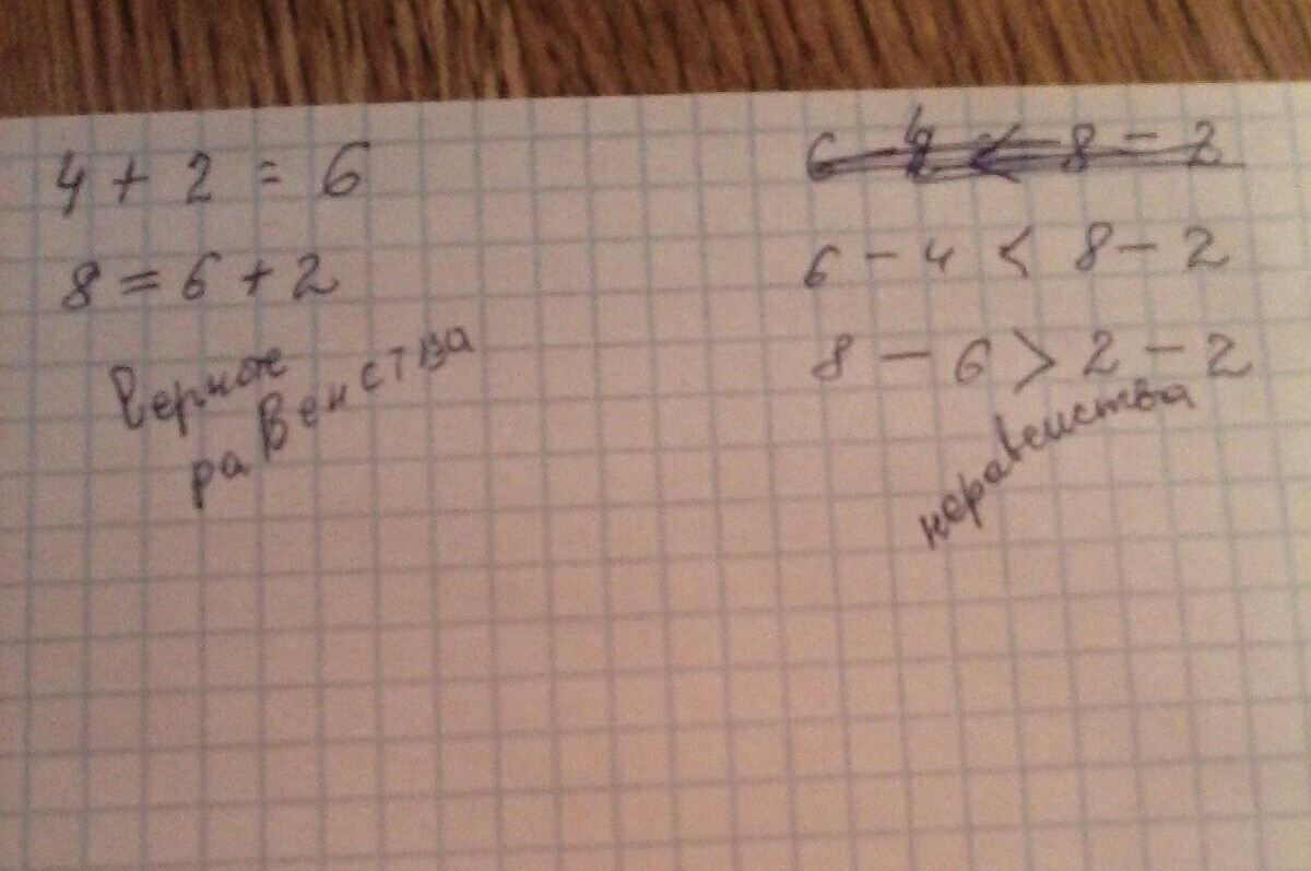 Відповідь:2+4=6 8÷2<6 2×4=8 8-2>4