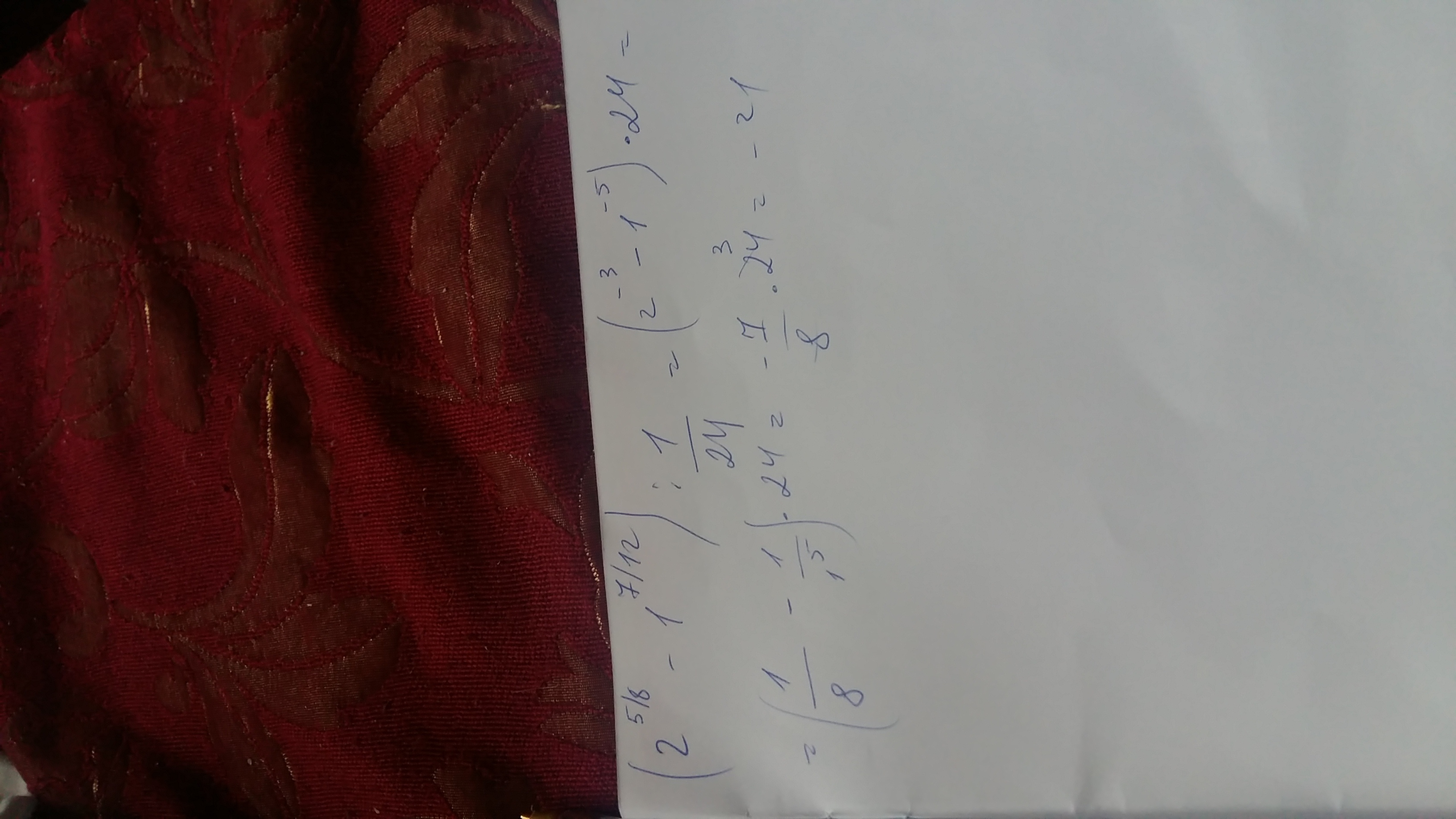 (2^-3-1^-5)×24=(1/8-1)×24=-7/8×24=-21