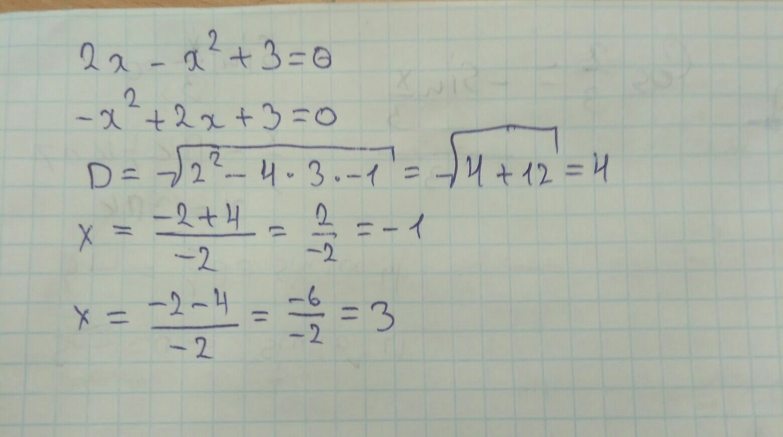 -X'2+2X+3=0 *(-1)