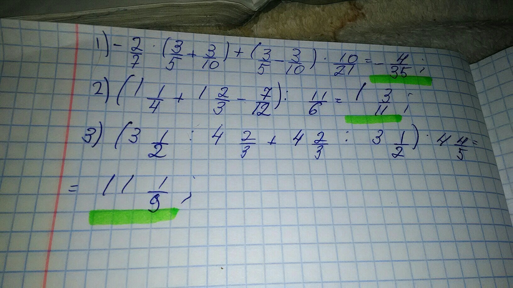 1)-2/7умножить(3/5+3/10)+(3/5-3/10)умножить 10/21