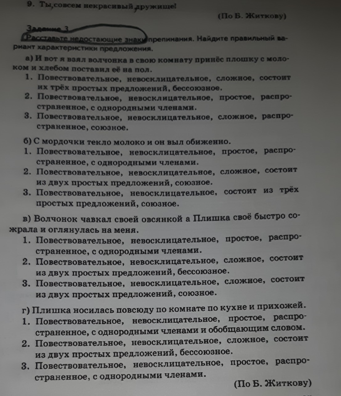б) 2 С мордочки текло молоко, и он был обиженно.
