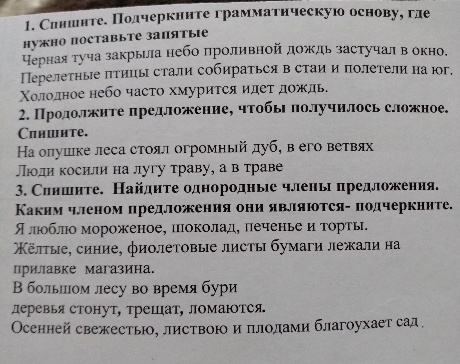 1. Чёрная туча закрыла небо ,проливной дождь застучал в окно.
