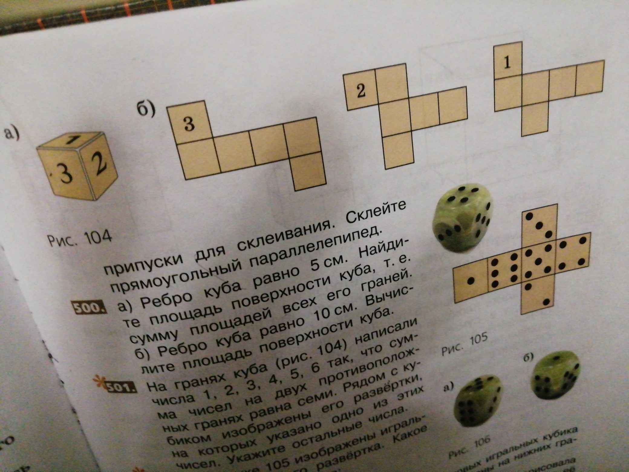 на гранях куба рис 104 написали числа 1 2 3 4 5 6 так сумма чисел на лвух противоположных гранях равна семи. Рядом с кубиком изображены его развертки на которых указано одно из этих чисел укажите остальные числа(и скиньте фотографии с каждой разверткой в ней цифре