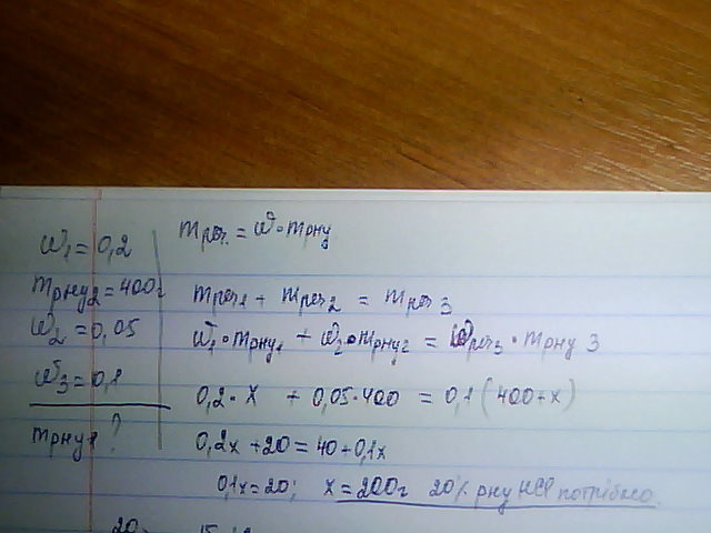 Скільки грам 20% розчину хлоридної кислоти необхідно добавити до 400 г 5% розчину щоб отримати 10% розчин