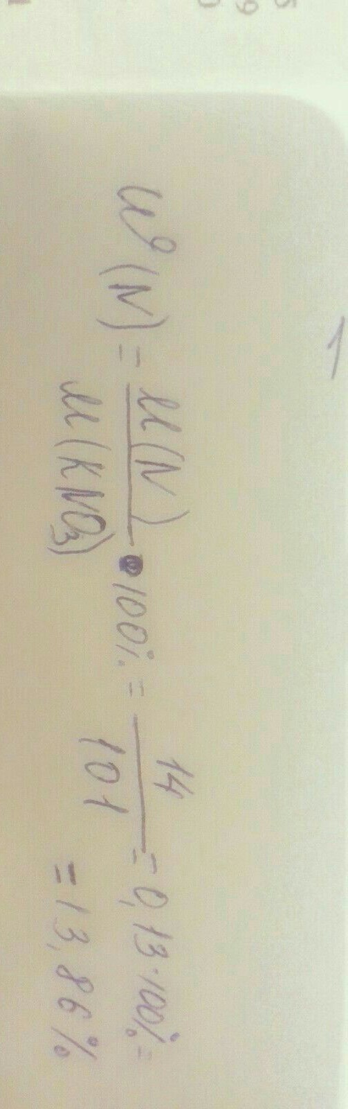 Вычислите массовую долю (%) азота в калийной селитре, KNO3 и объясните , почему селитрах относится к сложным веществам, азот N2 - к простым?!